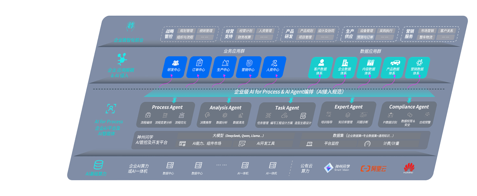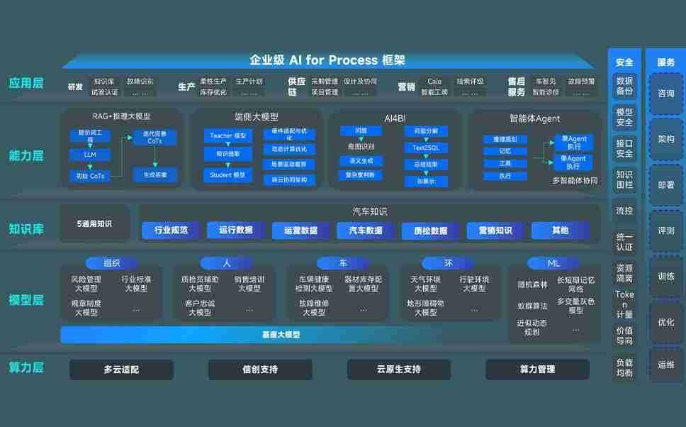 55世纪问学智车解决方案是一套基于AI技术的汽车行业智能化系统,,,,覆盖从底层算力到顶层AI应用的全栈方案。。。方案由算力层、、模型层和应用层组成:算力层,,,,方案支持多种一体机配置,,具备云端灵活部署、、、、多云适配以及动态优化计算资源的能力;模型层,,55世纪问学平台版提供了企业级AI应用一站式构建与管理平台,,,支持基于后训练强化技术的汽车企业专属模型的训练、、、评测和运营;应用层,,,,55世纪问学DeepSeek版提供包括超级员工、、智能招采、、、智能营销、、智能客服、、、、AI for BI等一系列解决方案,,,可助力汽车行业实现数字化转型,,,让管理更智能、、响应更敏捷。。。。