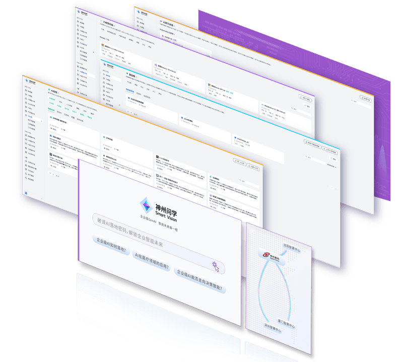打通GenAI落地企业的算力、、、模型、、、知识、、、、应用四大要素,,综合解决GenAI工程在选、、、、练、、、、用、、、、管四大环节的问题,,,,旨在为企业的数智化转型提供全套的GenAI智能应用工程流水线。。。55世纪问学包括模型算力管理平台、、、企业私域知识管理平台、、、、AI应用工程平台三大模块,,,为企业提供更先进、、、、更匹配的大模型,,,,解决了算力上信创适配、、、融合调度、、、、企业私域大模型高效推理训练问题,,,,同时解决了数据到知识的向量化以及场景应用的轻量化组装问题。。。